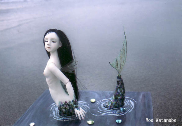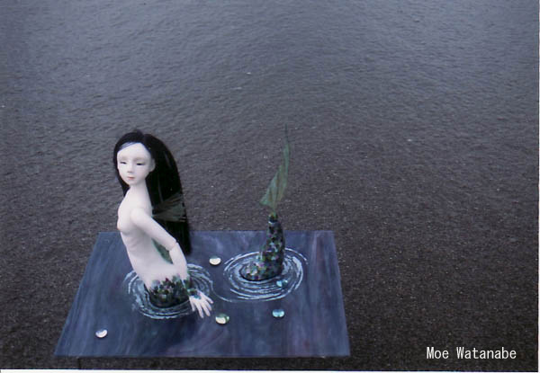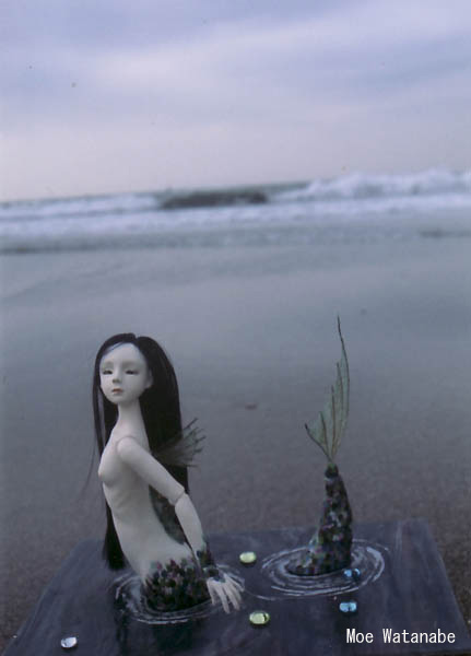 人魚なら水の上で、と撮影に挑みましたが全部波に飲まれて落っことしそうになりました…。